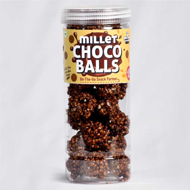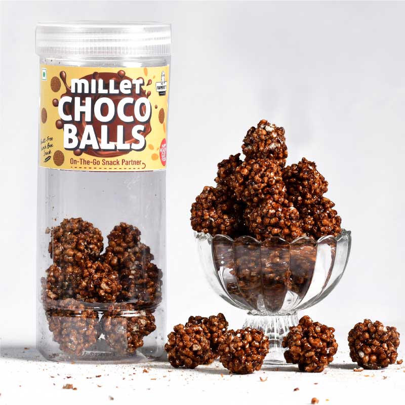 Puffed Millets with Jaggery and Cocoa, crunchy balls. Kids love them. Chocolatey!